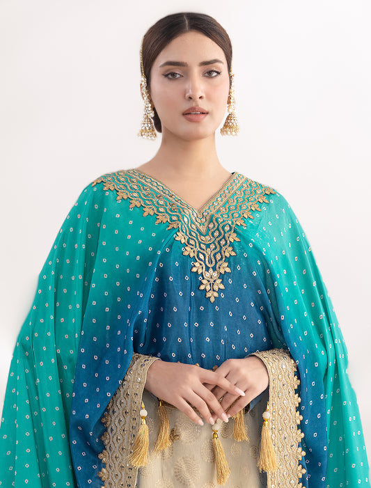 Ethnic Teal Blue Layered Kurta with Gota Work