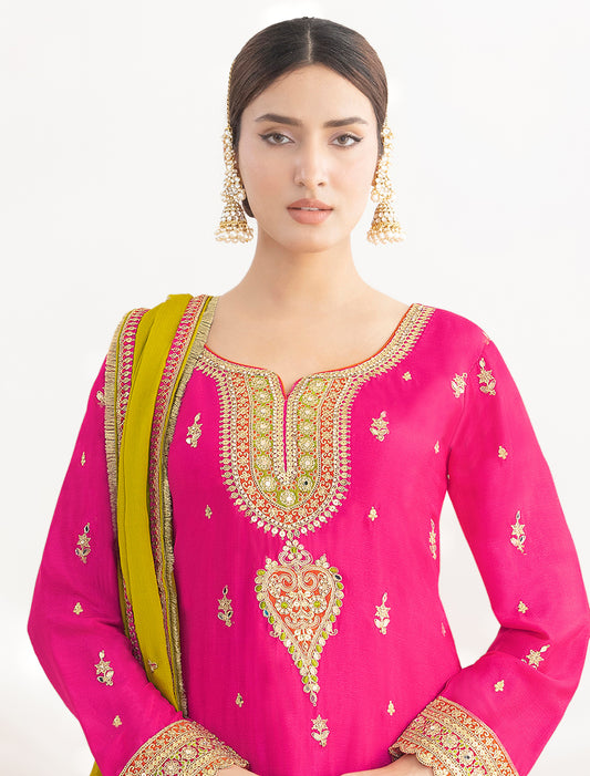 Freesize Ethnic Wear India – Premium Chinnon Embroidered Set