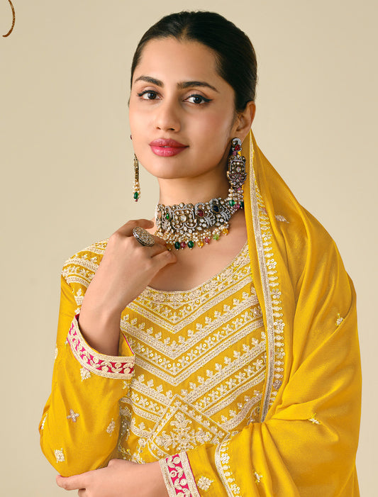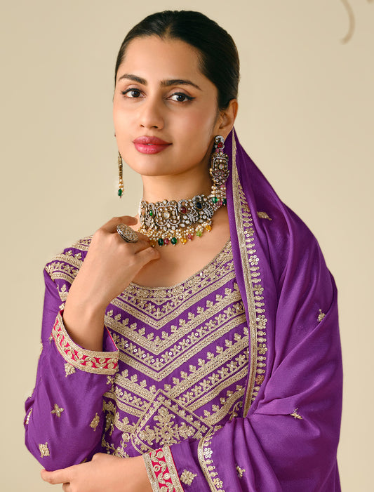 Heavy Embroidered Chinon Suit – Freesize Fit