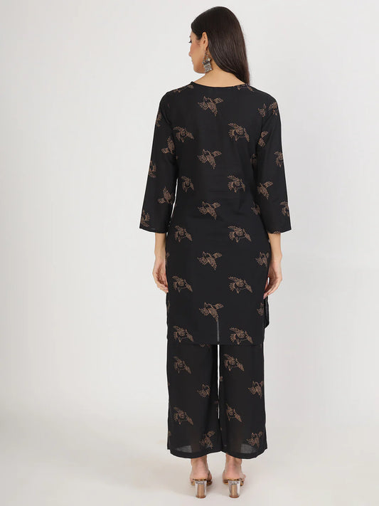 Black Muslin Handblock Ethnic Straight Co-ord Sets