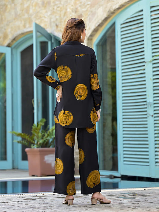 Black Hand Painted Muslin Casual Co-ord Set