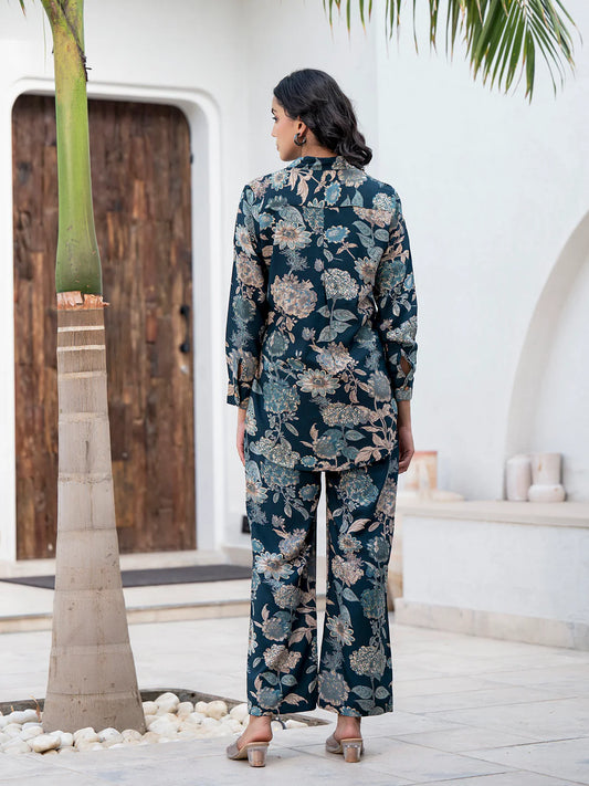 Sky Blue Ethinc Viscose Rayon Floral Print Co-ord Sets