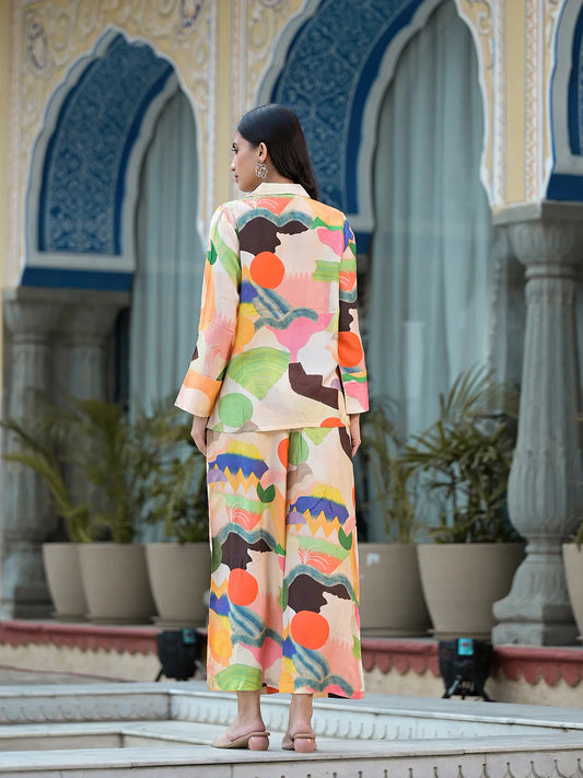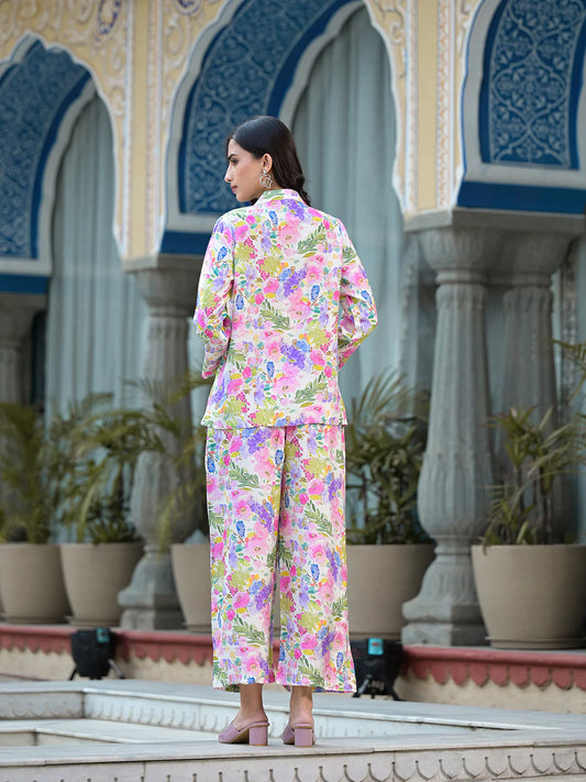 Multicolored Floral Print Muslin Casual Co-ord Set