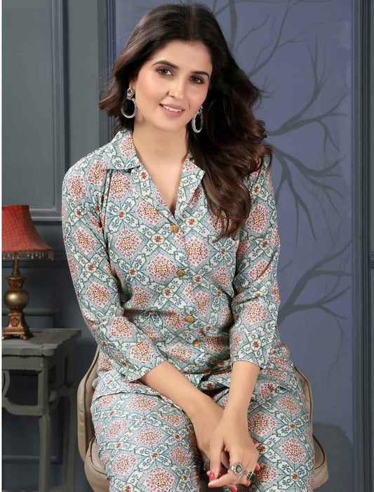 Multi Color Viscose Rayon Ethnic Floral Print Co-ord Sets
