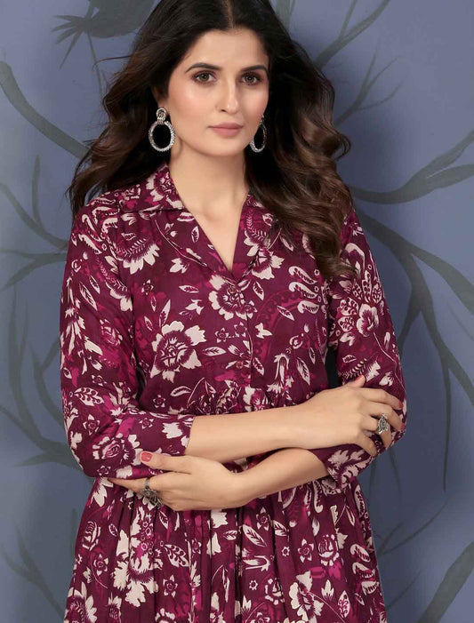 Purple Floral Viscose Rayon Ethnic Casual Co-ord Sets