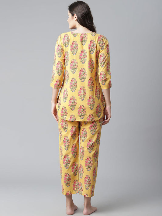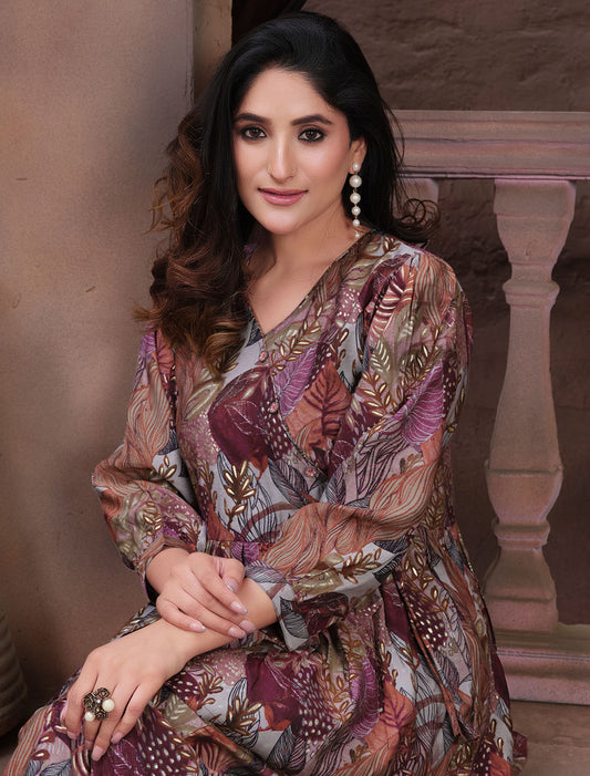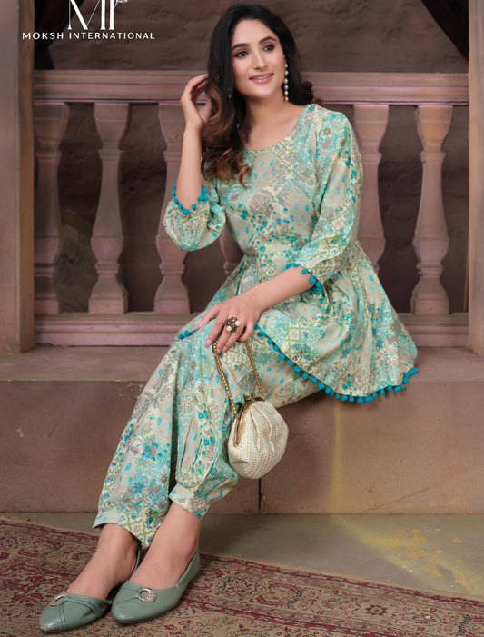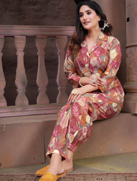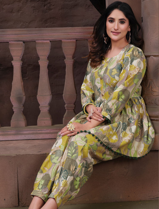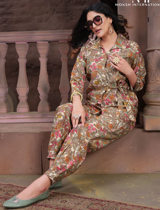 Botanical Beauty Premium Chanderi Export Quality Co-ord Set For Women Print Top & Pant