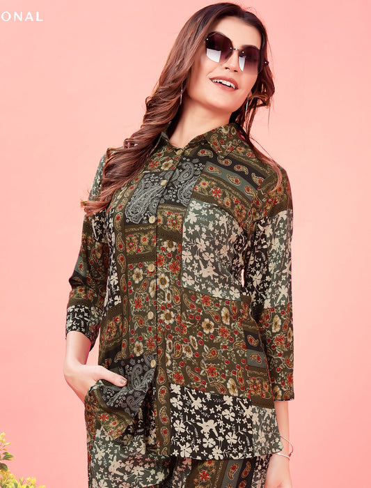 Elevate Multi-color Premium Rayon Top & Pant Floral Co-ord Sets for Women