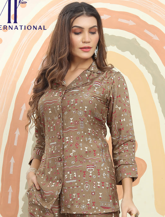 Elevate Off Dark Brown Premium Rayon Top & Pant Co-ord Sets for Women