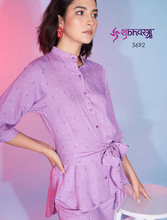Lavender Elevate Designer Viscose Rayon Shrugs Type Co-ord Sets For Women
