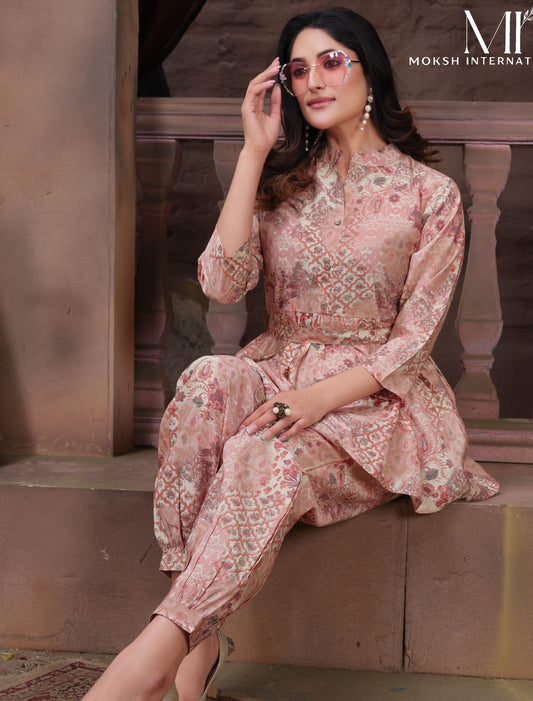 Blossom Delight Women Premium Chanderi Export Quality Print Ensemble Co-ord Set