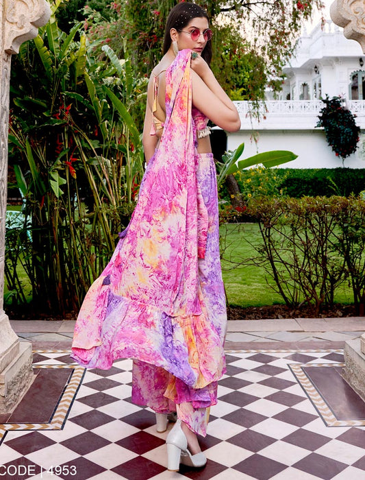 Enchanting Pinnk Georgette Embroidered Stitched Koti Style Palazzo Co-ords Set Style