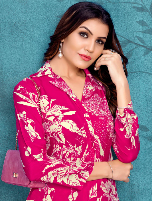 Luxurious Pink Premium Rayon Top & Pant Co-ord Sets for Women