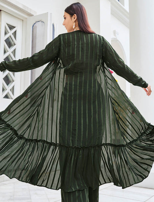 Introducing Dark Green Premium Chanderi Top & Pant Co-ord Sets for Women