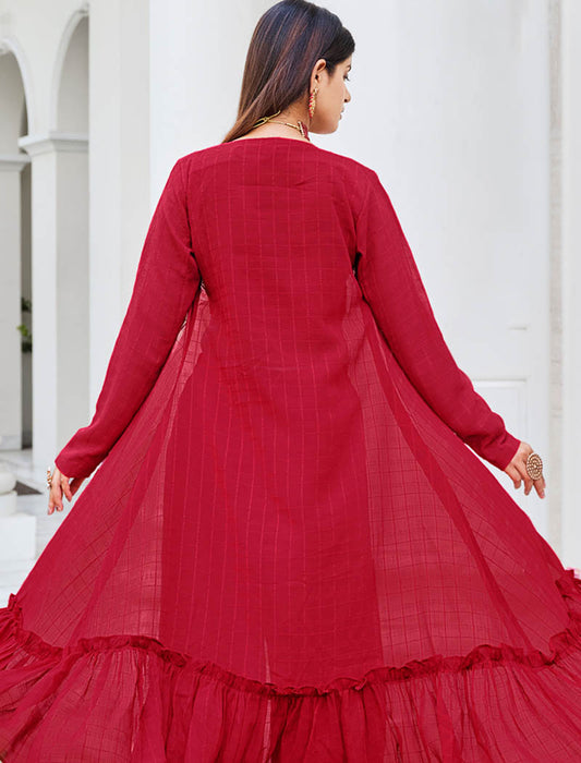 Regal Red Georgette Embroidered Stitched Koti Style Palazzo Co-ords Set Style