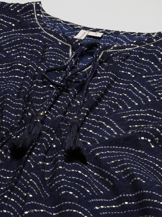 Ethnic Blue Rayon Bandhej Kaftan Pant Set