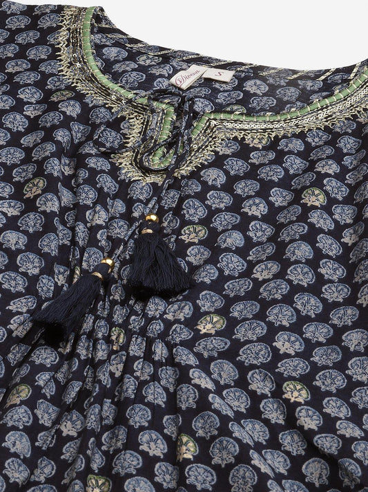 Sold outEthnic Blue Rayon Kaftan Pant Set