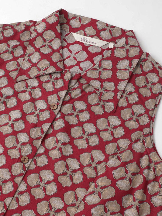 Party Wear Rayon Maroon A-Line Floral Printed Midi Dress