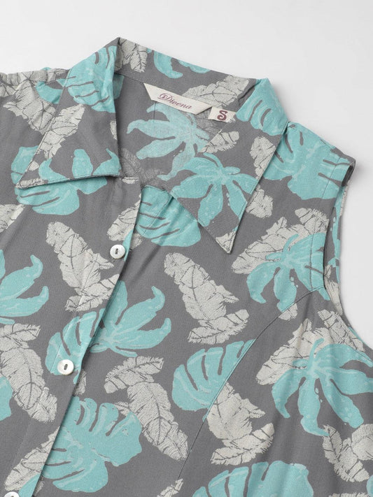 Rayon Grey A-Line Floral Printed Party Wear Midi Dress