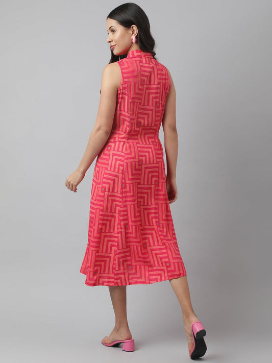 Rayon Pink A-Line Floral Printed Party Wear Midi Dress