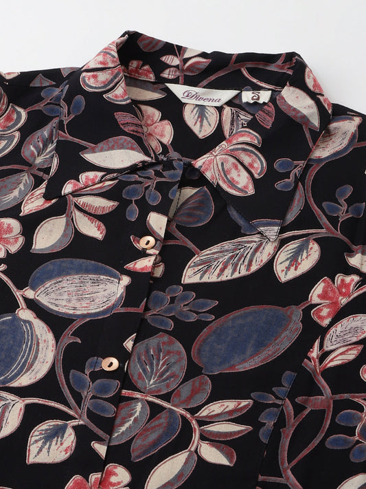 Black Floral Printed Cotton Ethnic Party Wear Dress for Women