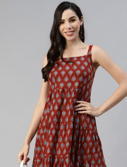 Maroon Ethnic Buti Printed Shoulder Strip Party Wear Long dress