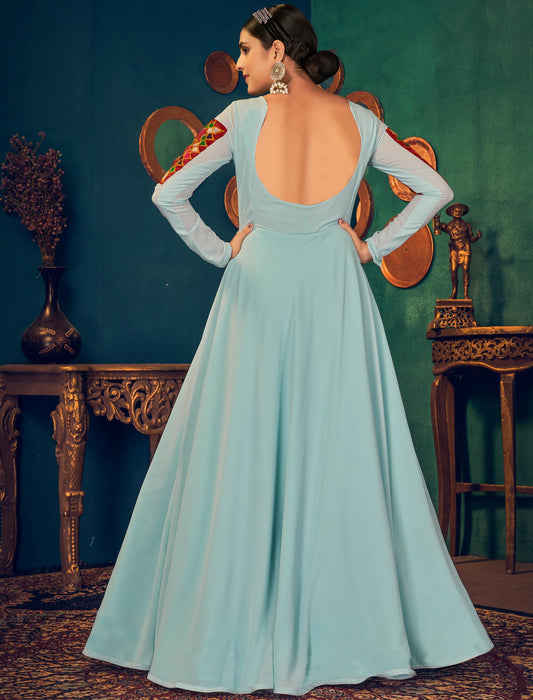 Designer Anarkali Ethnic Long Gown For Women in Sky Blue