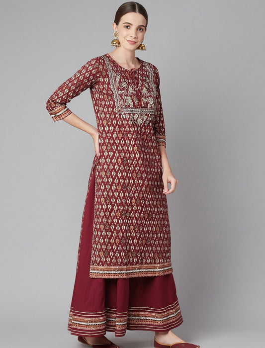Maroon Floral Printed Kurta With Palazzos & With Dupatta For Women