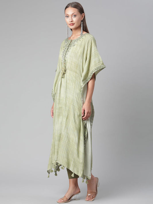 Green Rayon Kaftan Pant Set For Women