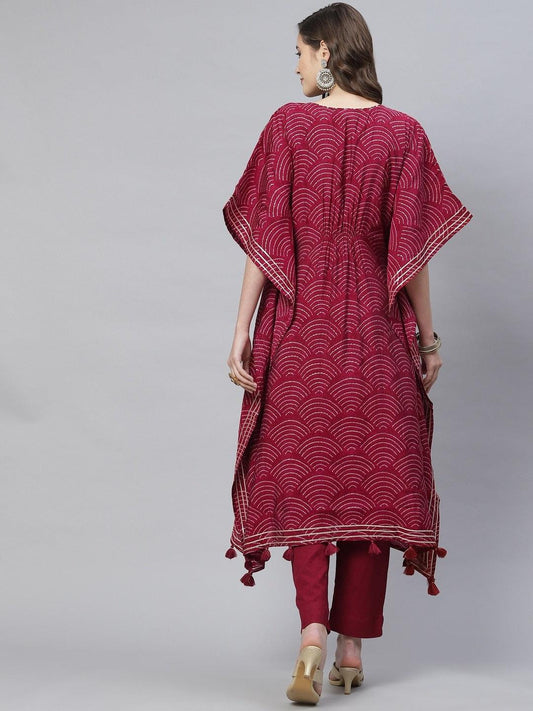 Magenta Modal Bandhej Kaftan Pant Set For Women