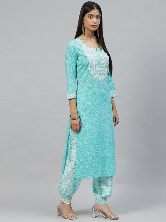 Divena Turquoise Bandhani Printed Kurta Pant Set with Dupatta