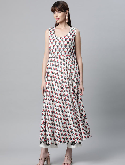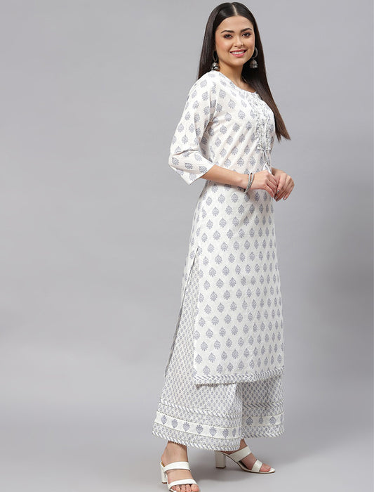 White Ethnic Motifs Printed Pure Cotton Kurta with Palazzos & Dupatta Kurta Sets For Women