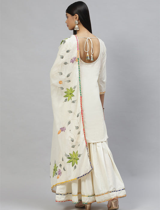 Cream Solid Kurta Sharara Set with Hand Painted Dupatta
