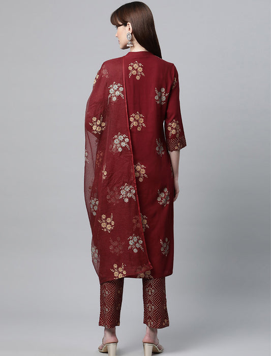 Ethnic Maroon Rayon Kurta Pant Set with kota doria Dupatta