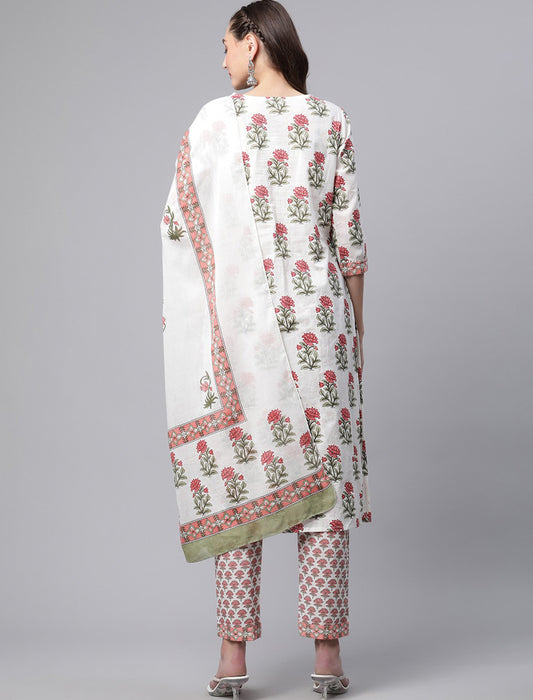 Ethnic Floral Printed Cotton Kurta Sets with Trousers & Dupatta
