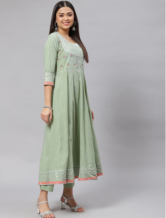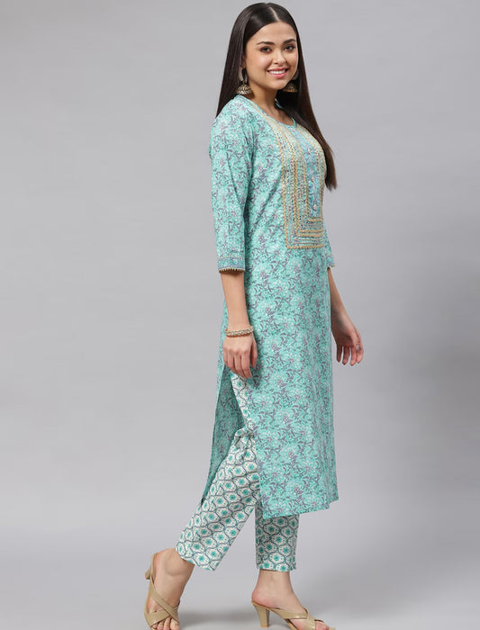 Sea Green Ethnic Pure Cotton Kurta Pant Sets
