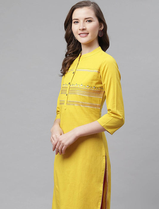 Mustard Yellow Yoke Design Straight Divena Kurta For Women