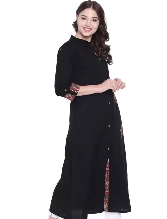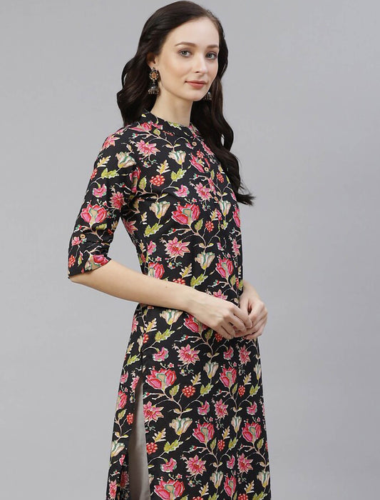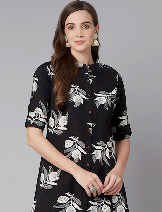 Black Floral Cotton Printed Ethnic Kurta For Women