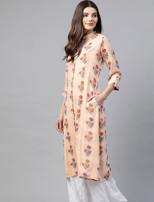 Peach-Coloured Floral Printed Divena Kurta For Women