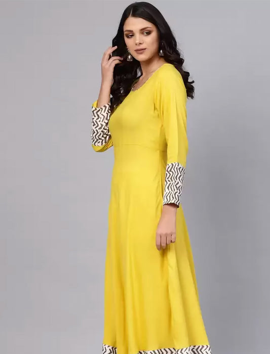 Yellow Chevron Printed Anarkali Divena Kurta For Women