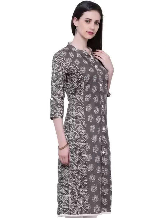 Grey Printed Cotton A-line Divena Kurta For Women