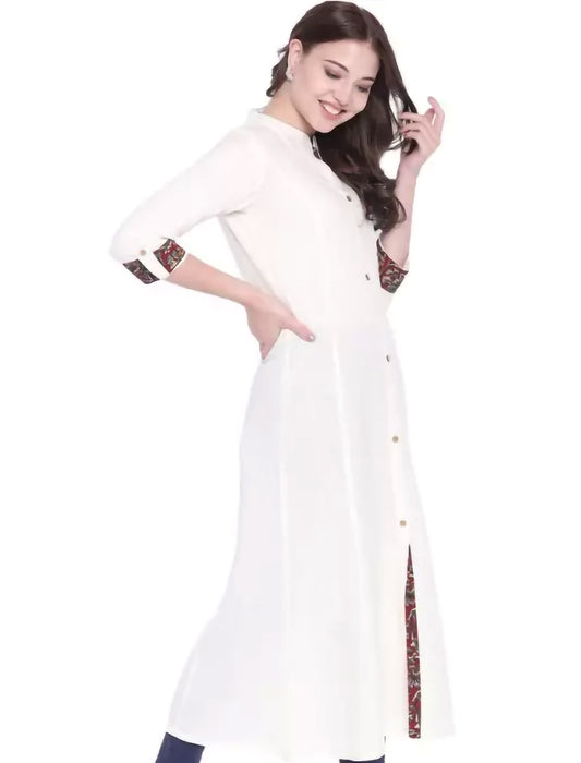 Off-White Gotta Patti Solid A-Line Divena Kurta For Women