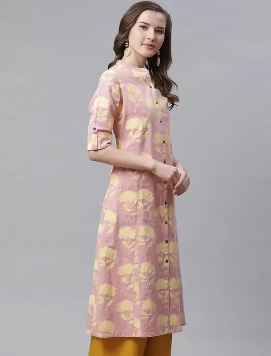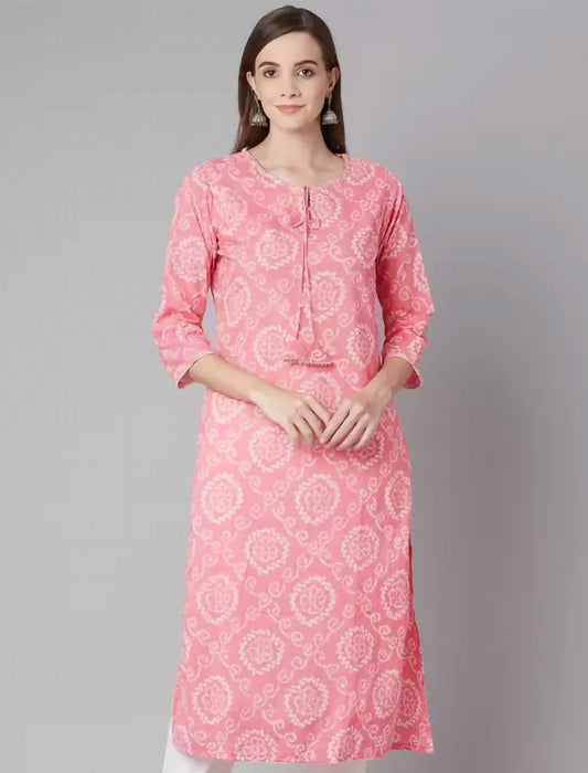 Pink Printed Cotton Straight Divena Kurta For Women