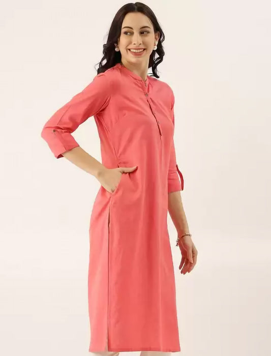 Peach-Coloured Side Slits Ethnic Kurta For Women