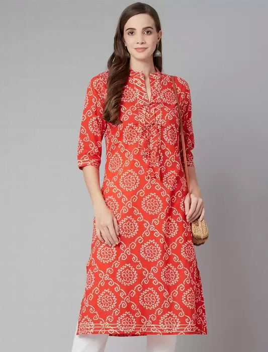 Red Geometric Printed Floral Ethnic Kurta For Women