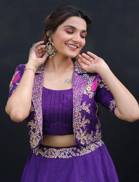 Chinon Lehenga Choli And Micro Cotton Inner With Embroidered Work Our New Lehenga Choli With Jacket Collection