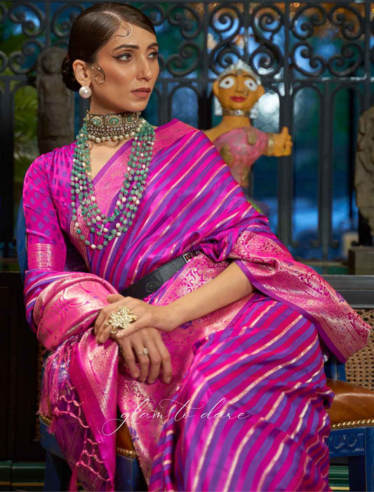 Discover Ethnic Silk Zari Base Handloom Weaving Designer Saree