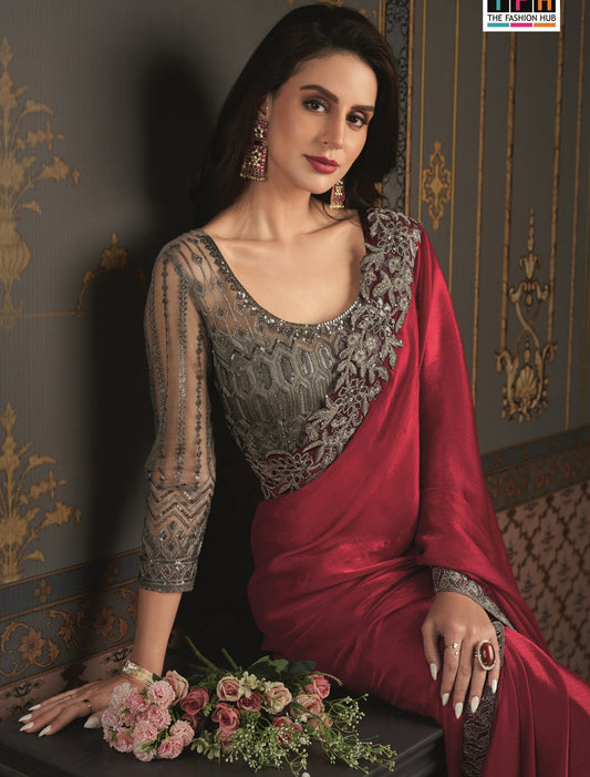 Discover Our Cherry Silk Designer Saree Ethnic & Party Wear
