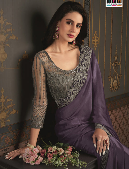 Ethnic Shine & Silk Designer Hand Work Party Wear Saree