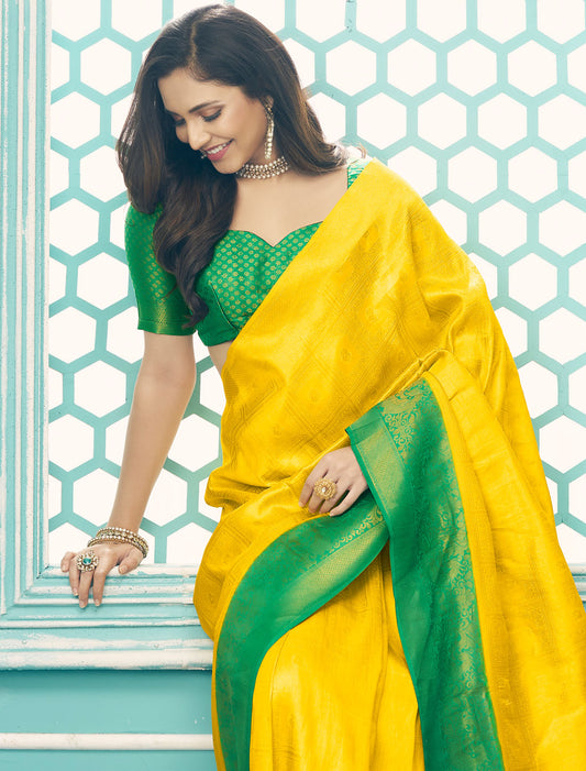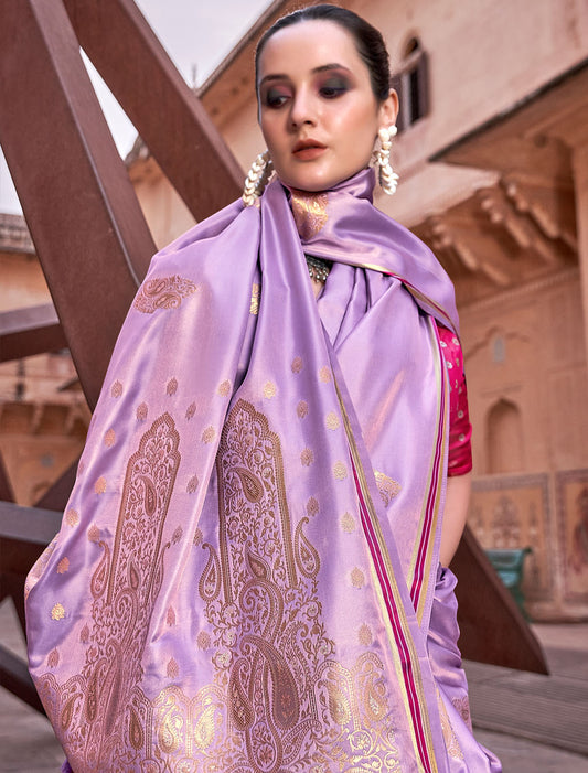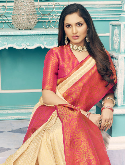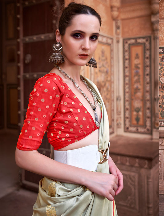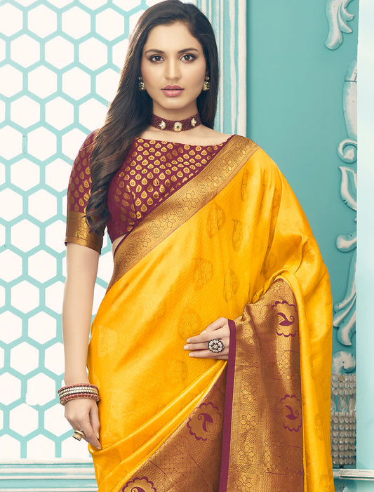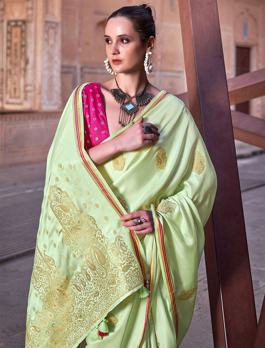 Golden Grace Pure Satin with Zari Weaving & Contrast Blouse Saree