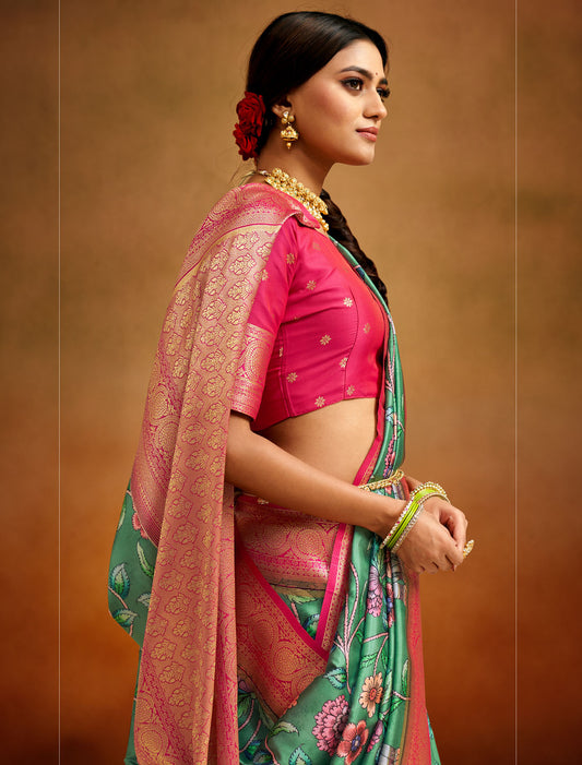Harmony in Hues Women Softy Kubera Pattu with Chaap Dying Saree